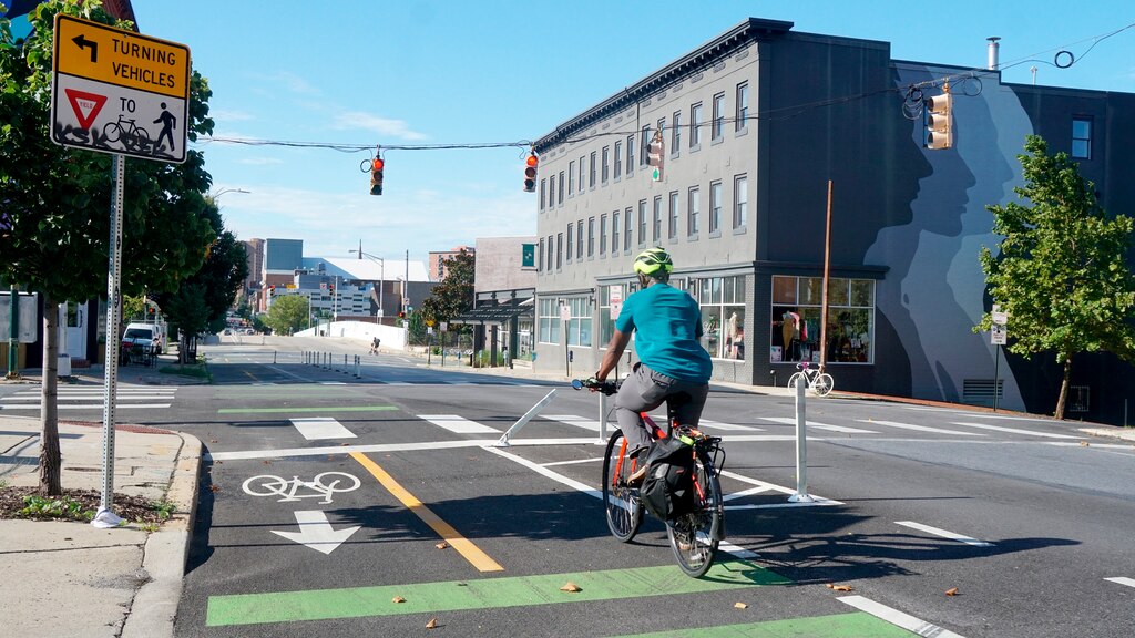 Such projects can, but don’t always, involve bike lanes, and also can include things like widening the amount of space for pedestrians at intersections or sprucing up bus stops. Projects that take a lane away from cars in exchange for a bike lane — like what happened on Baltimore’s 28th Street — face particular scrutiny, Pérez said.