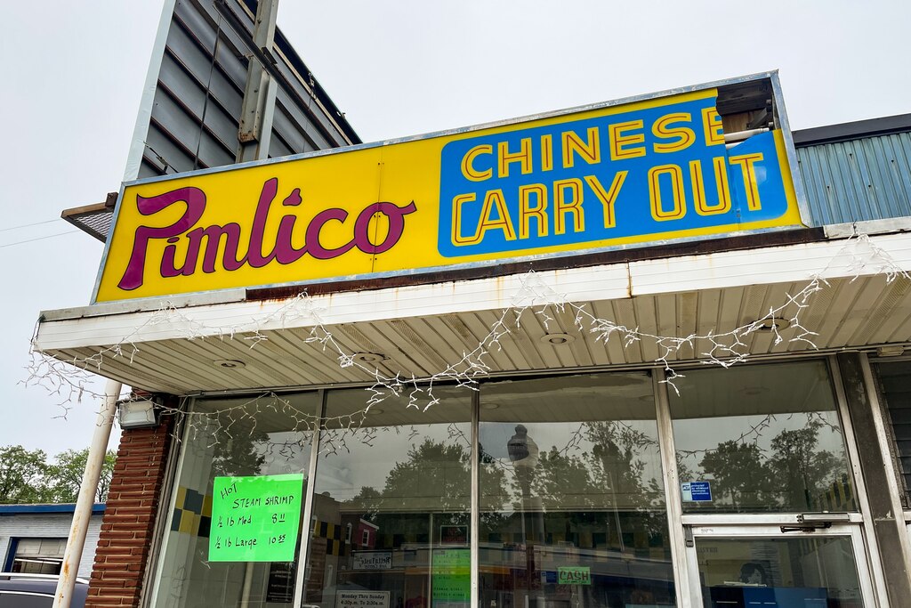 Pimlico Chinese Carry Out, located at 5416 Park Heights Ave., is one of numerous takeout spots in the neighborhood just outside the famed race course that shares its name. The surrounding Park Heights area is home to a vibrant if low-key carryout scene, with casual Caribbean restaurants serving Jamaican specialties like brown stew chicken and callaloo patty. There’s KT’s Kitchen, home to “world famous” bean pie.