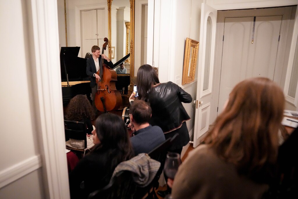 The “stage” on this night — a section of the dark, hardwood floor at one end of the room — was set up with a piano, double bass and drum set for the Joshua Espinoza Trio, a group formed in 2018 that combines jazz, pop and folk music during its performances. The opening acts were several young artists, some still in grade school, who serenaded the crowd with “Moonlight Sonata” and other classics.